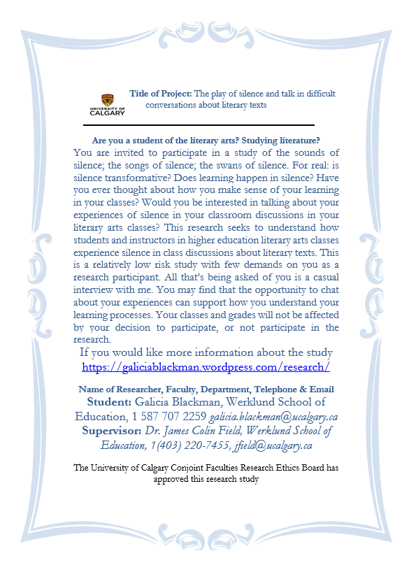Hamelock, M., & Friesen, N. (2012). One student’s experience of silence in the classroom. Retrieved from http://learningspaces.org/2012/07/13/silence/